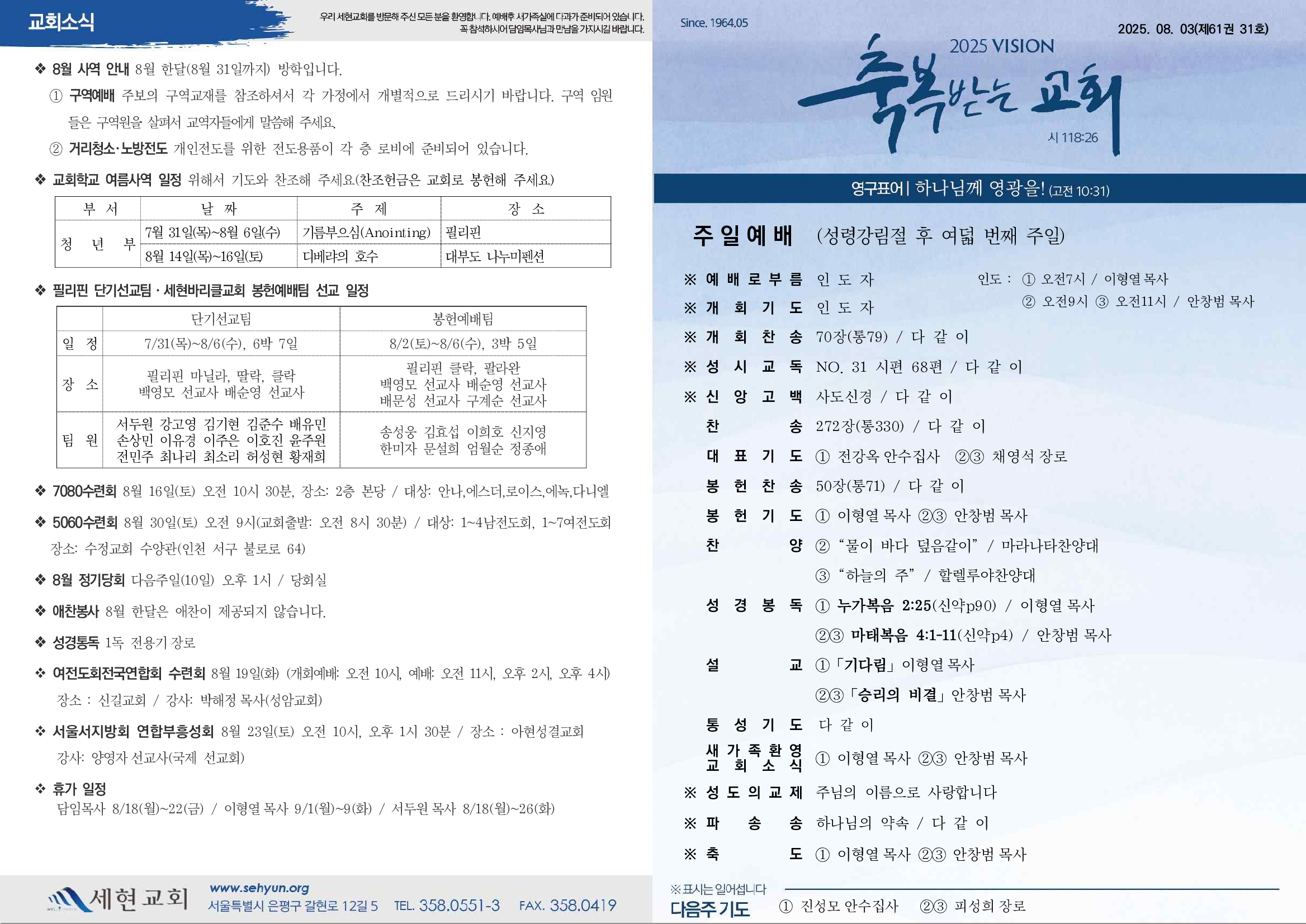 8¿ù 3ÀÏ(ÁÖÀÏ) ÁÖº¸