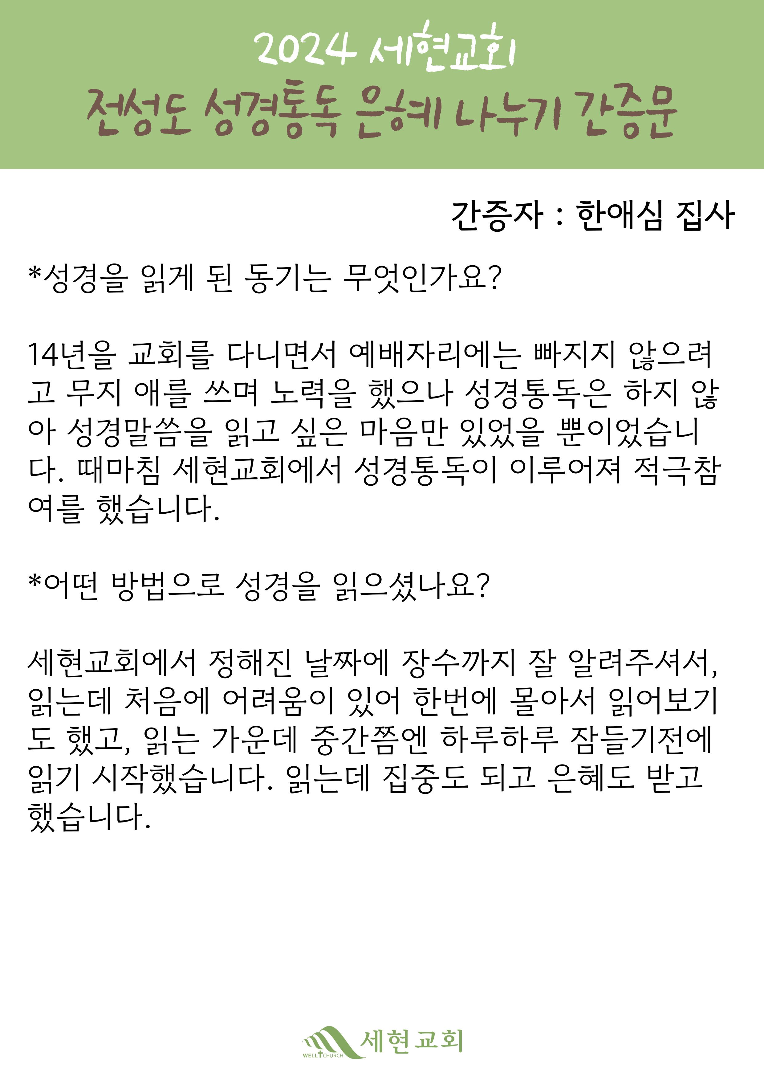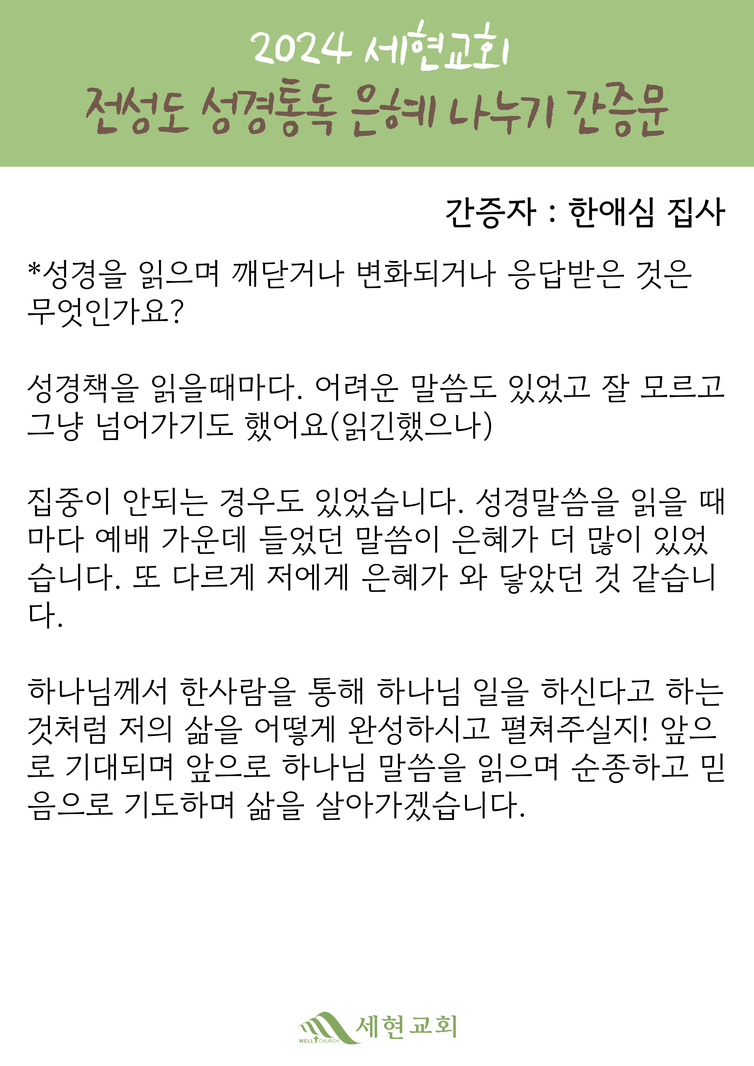 SEHYUN EVANGELICAL HOLINESS CHURCH